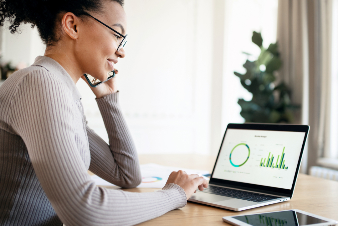Premium Photo Business man using a laptop to check financial data