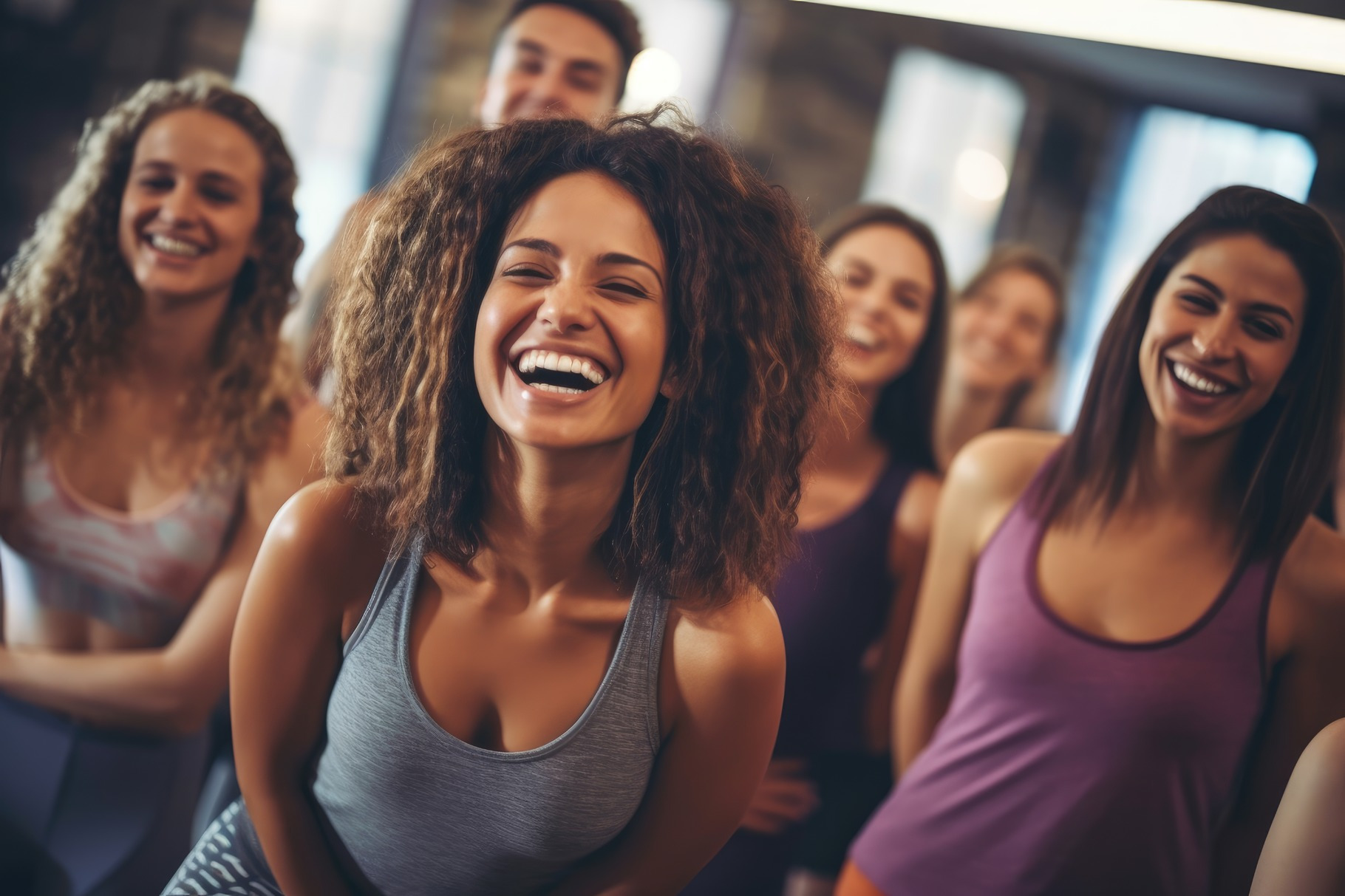 A front facing view of a lively group of 20 year old girls