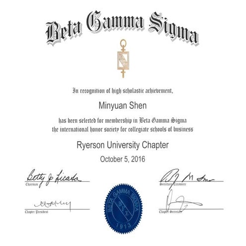 Beta Gamma Sigma Certificate