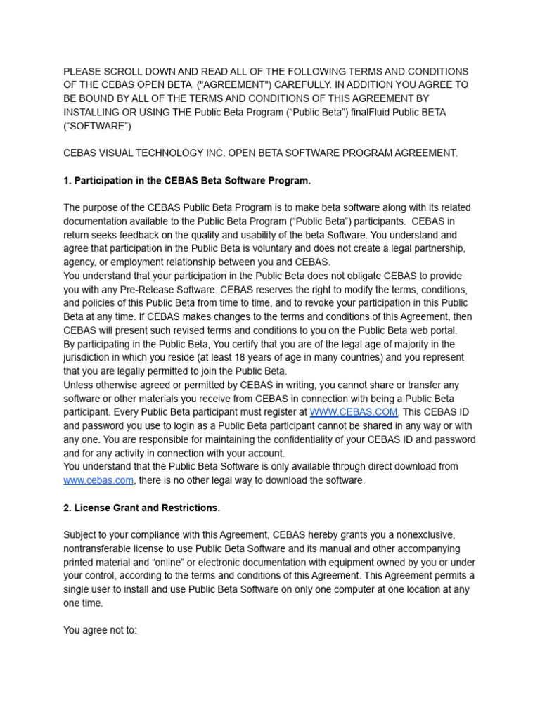 Finalfluid Public Beta Test Agreement PDF Software Release Life