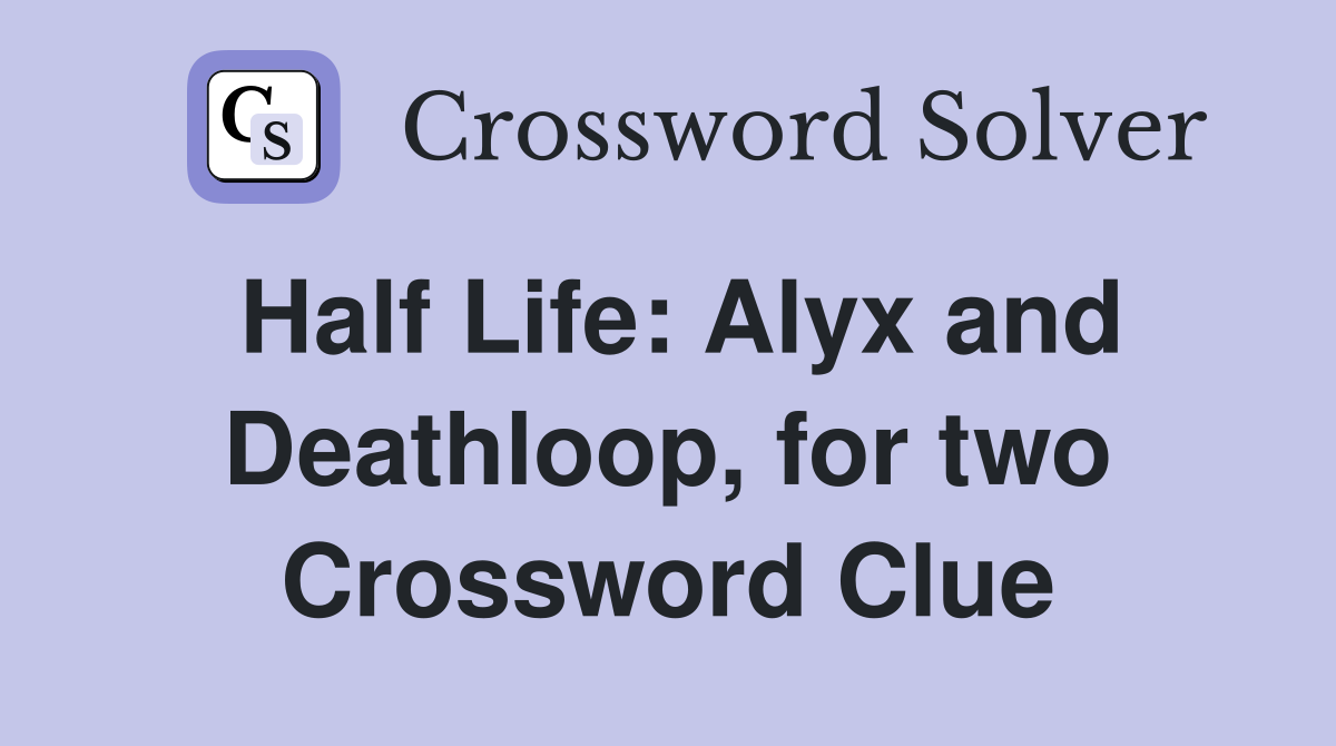 Half Life: Alyx and Deathloop for two Crossword Clue Answers