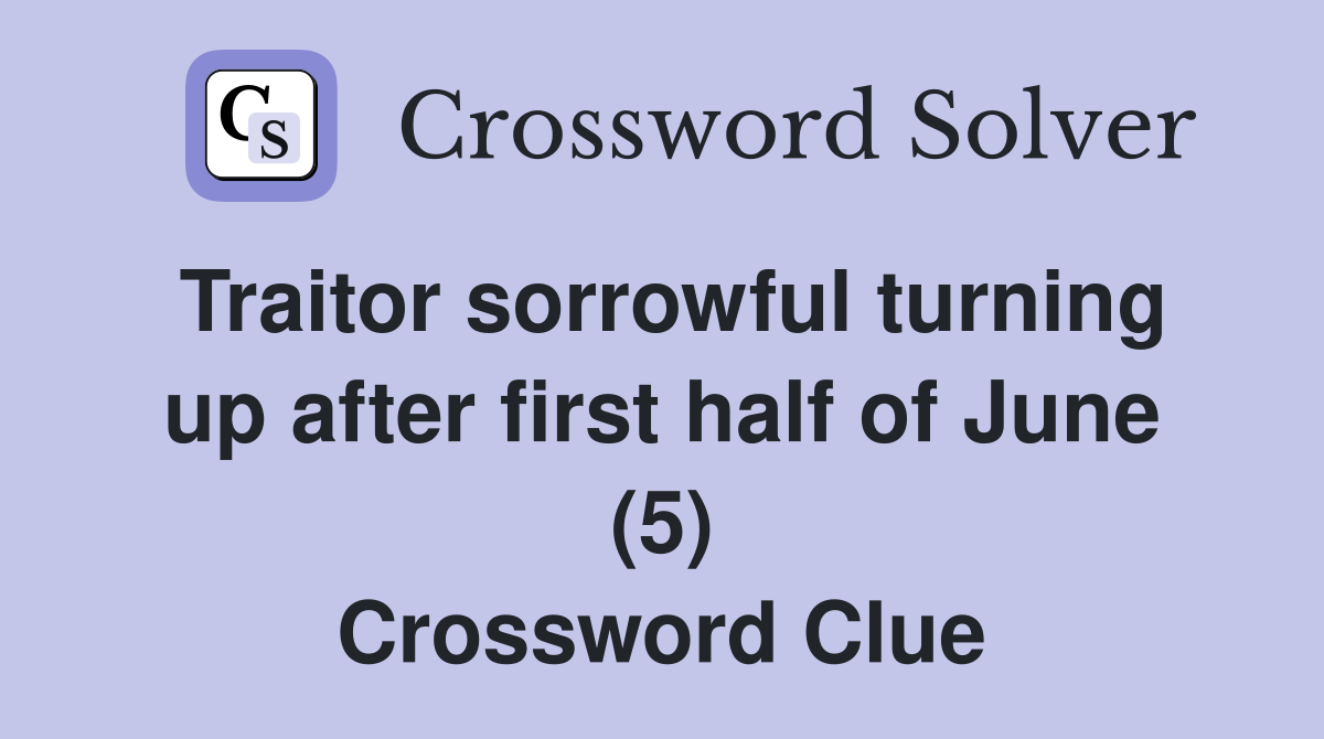 Traitor sorrowful turning up after first half of June (5) Crossword