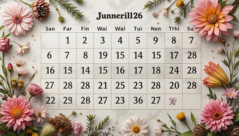 Calendar Layout Surrounded by Floral Elements for Scheduling and