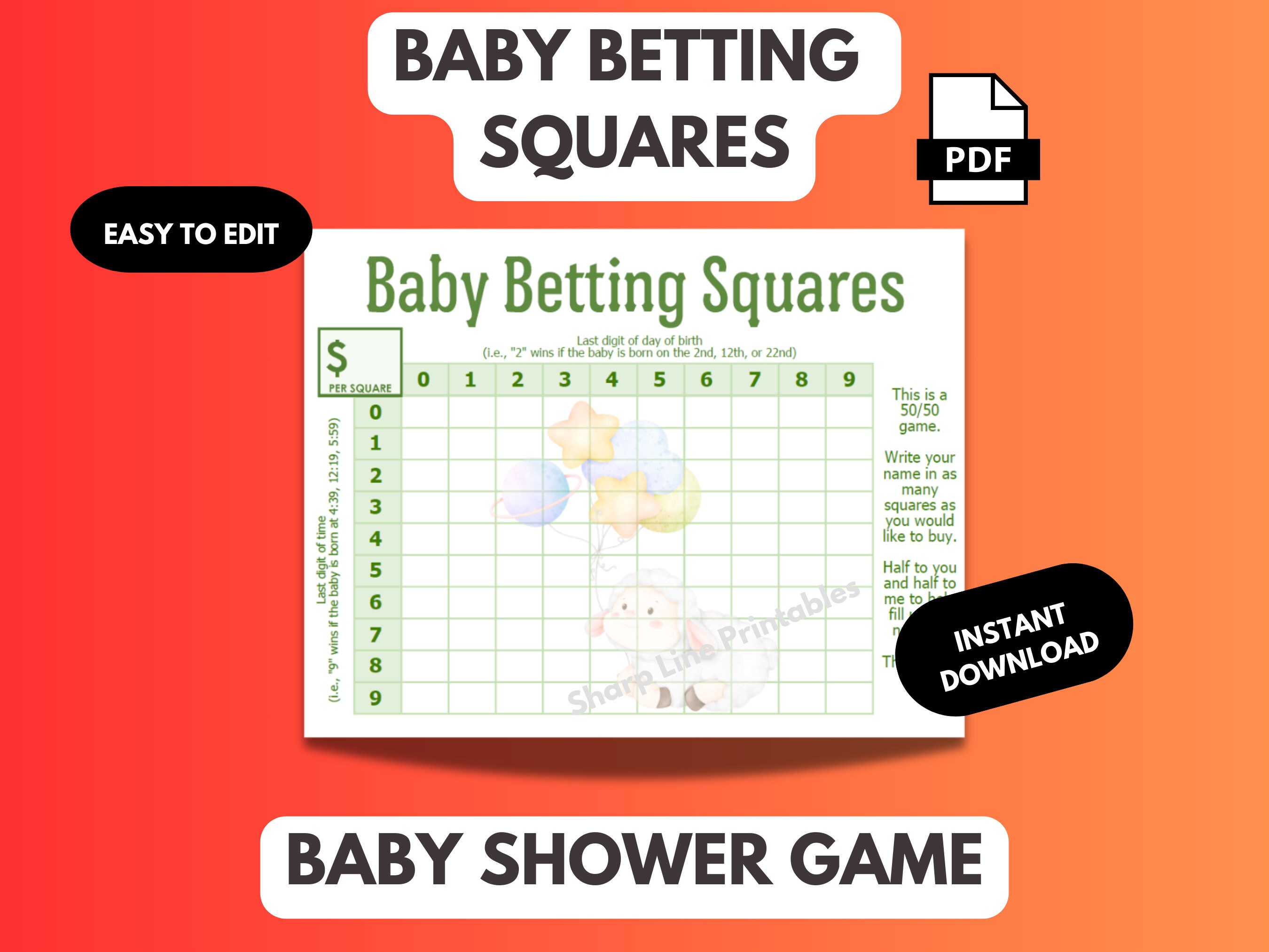 Baby Betting Squares Game Fun Baby Shower Guessing Game Editable Baby