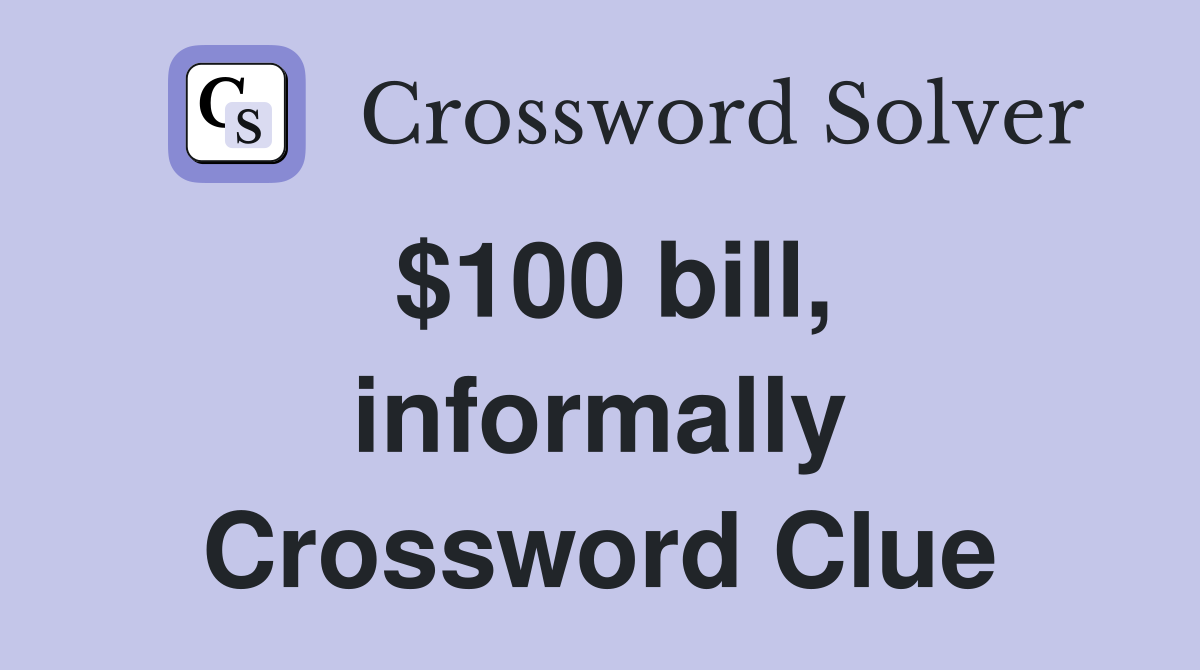 $100 bill informally Crossword Clue Answers Crossword Solver