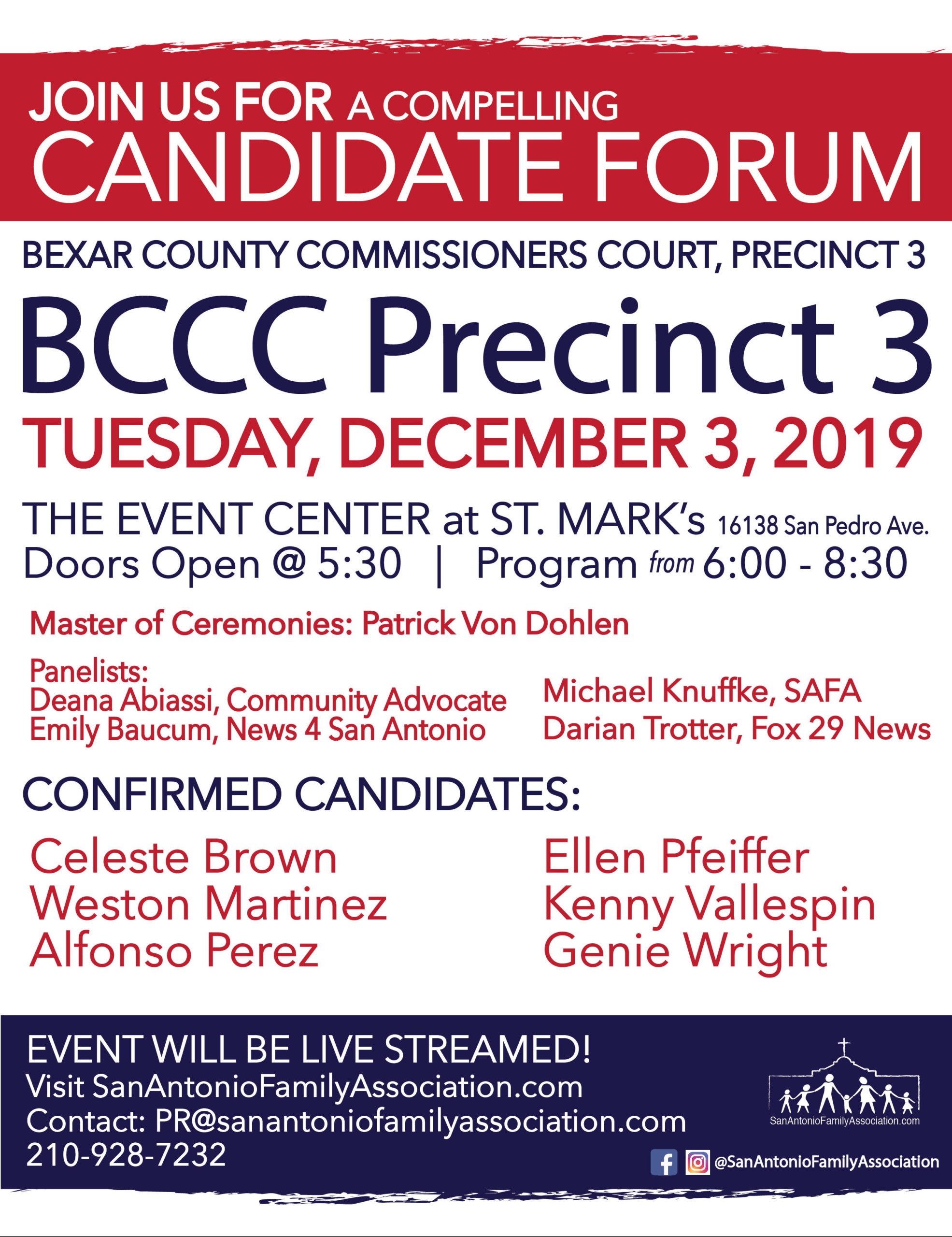 Bexar County Commissioners Court Precinct 3 Candidate Forum SAN