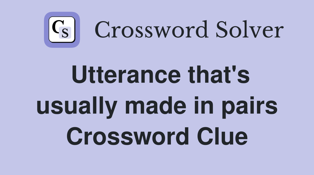 Utterance that #39 s usually made in pairs Crossword Clue Answers
