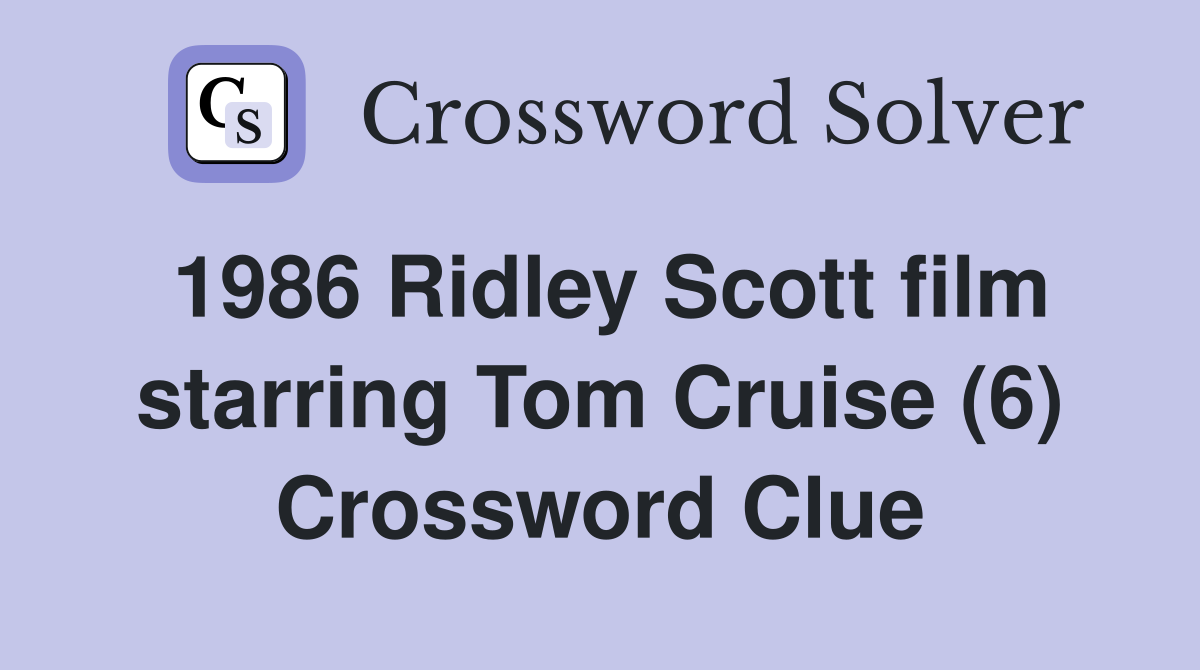 1986 Ridley Scott film starring Tom Cruise (6) Crossword Clue Answers