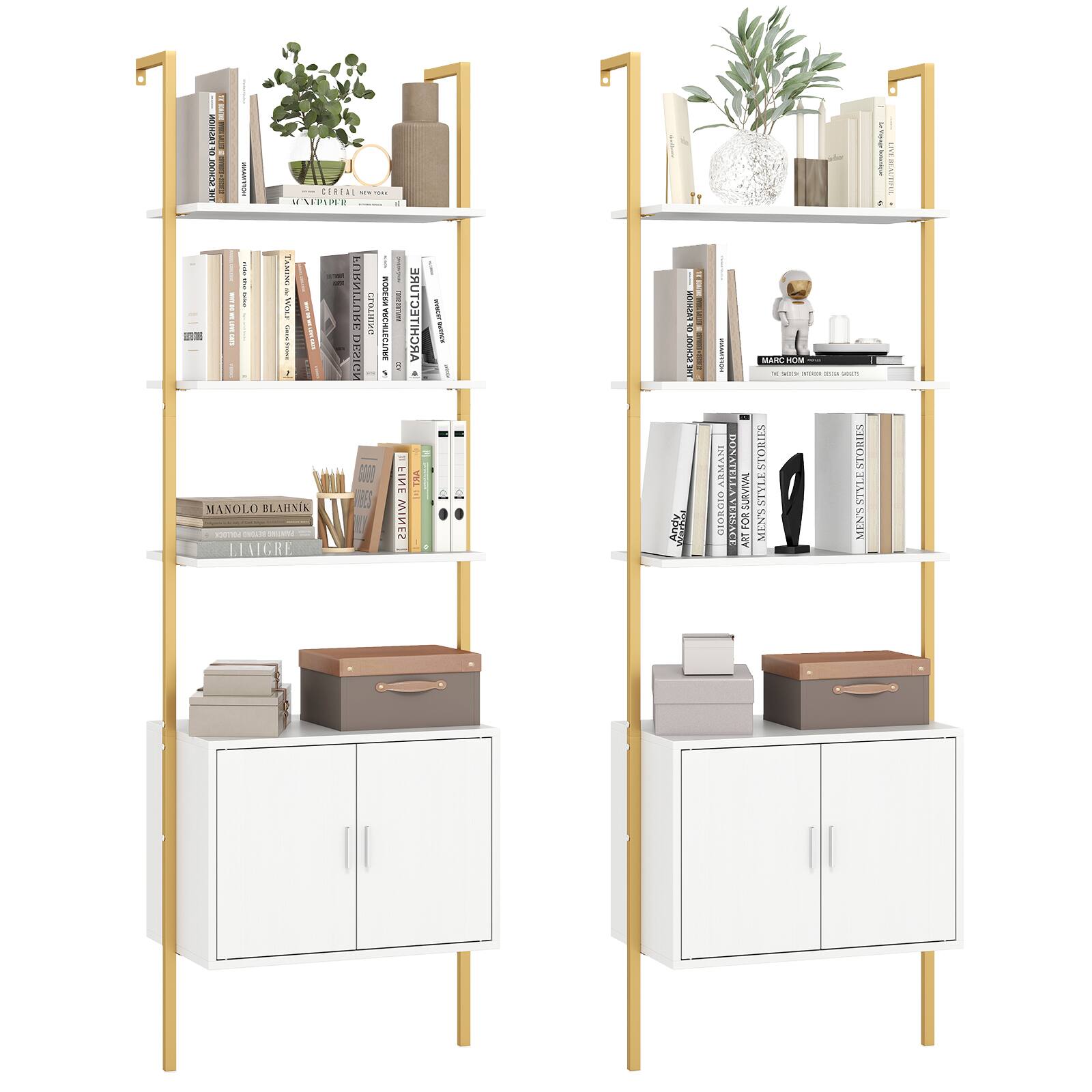 Gymax 2PCS 72 5 #39 #39 Tall Bookshelf 5 Tier Wall Mount Ladder Bookcase w