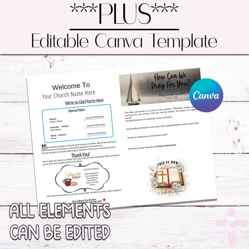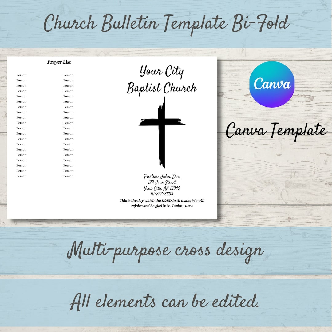 Printable Church Bulletin Cover PLUS Canva Template 8 5 X 11 Bi fold