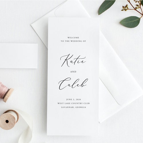 Bi Fold Wedding Program Template Minimalist Order of Service INSTANT