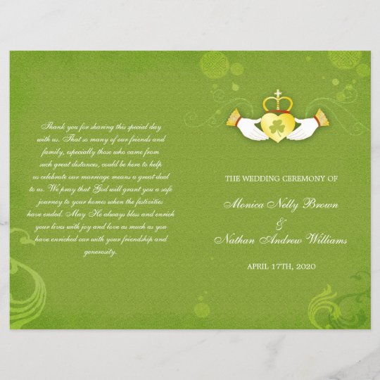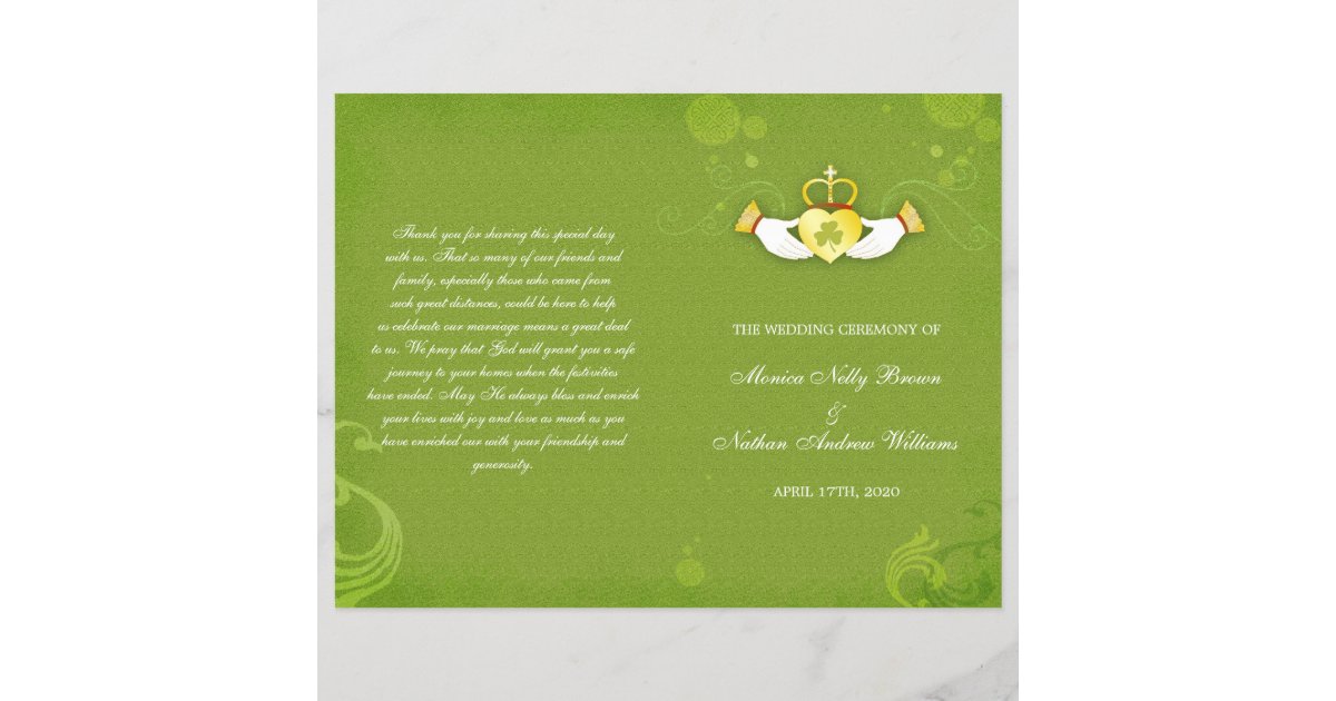 Elegant Green Irish Bi Fold Wedding Programs Zazzle