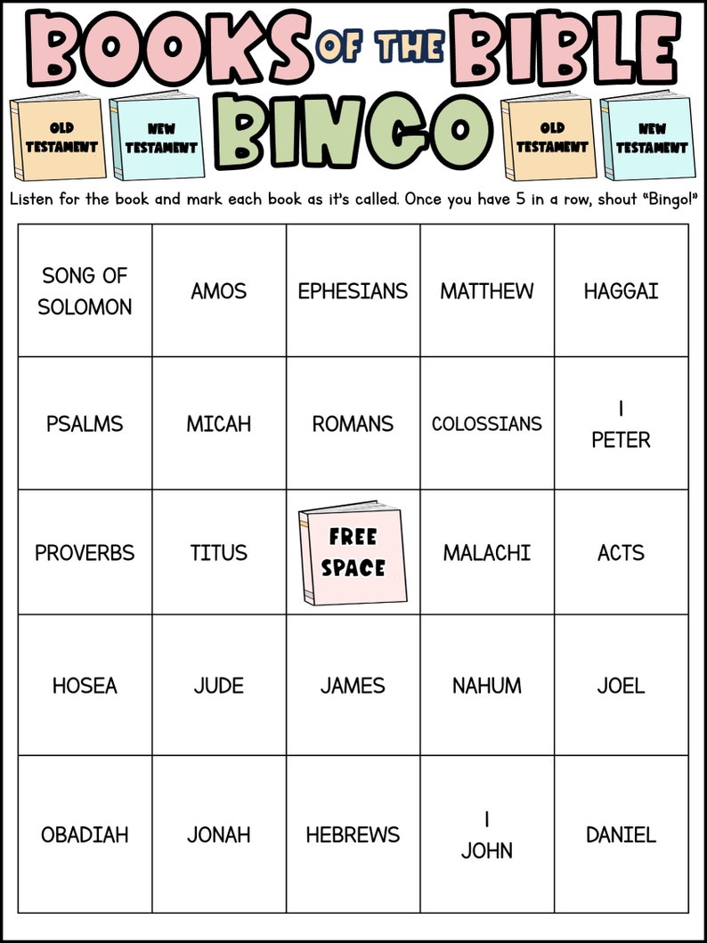 Books of the Bible Bingo 48 Printable Cards Memory Match Game Etsy