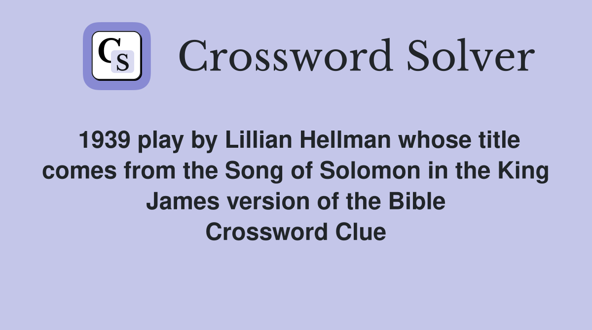 1939 play by Lillian Hellman whose title comes from the Song of Solomon