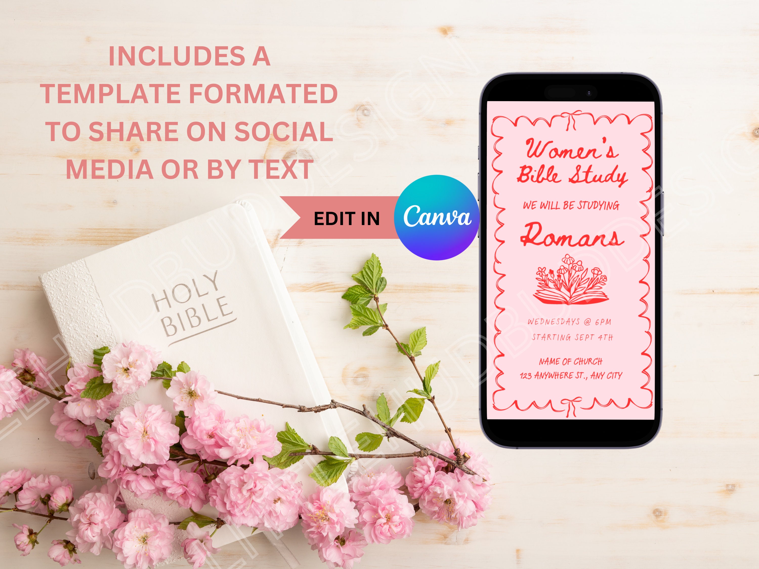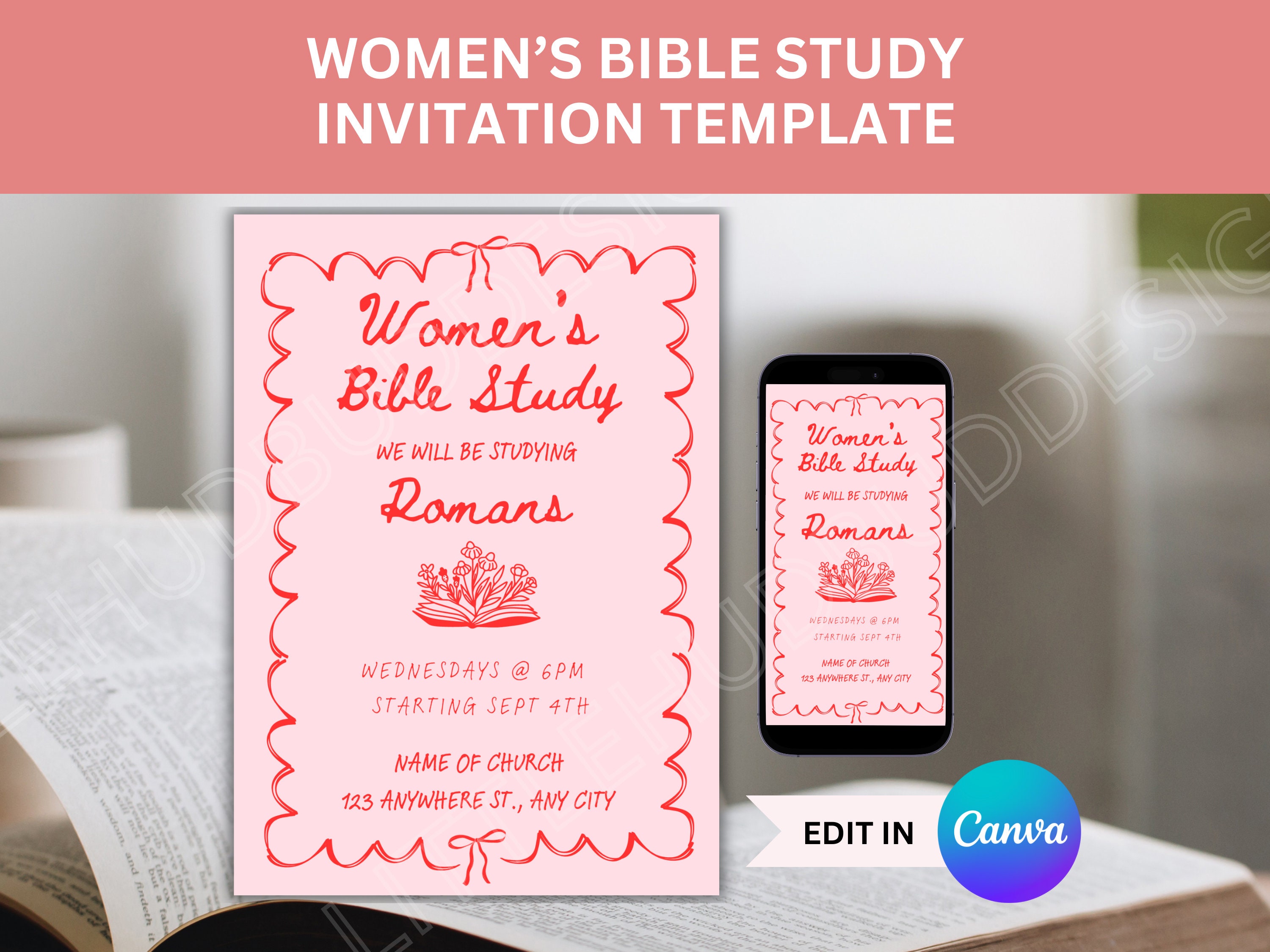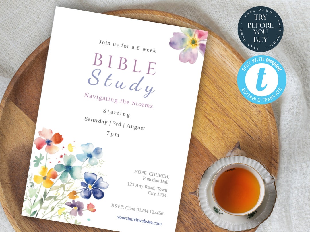 Bible Study Invitations Canva Template Etsy