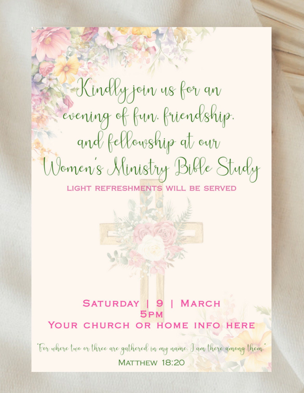 Women #39 s Bible Study Invitation Template for Women #39 s Fellowship Group