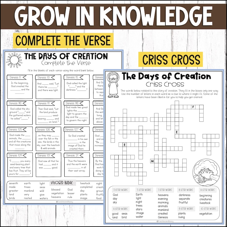 7 Days of Creation Printable Bible Activity Sheets Puzzle