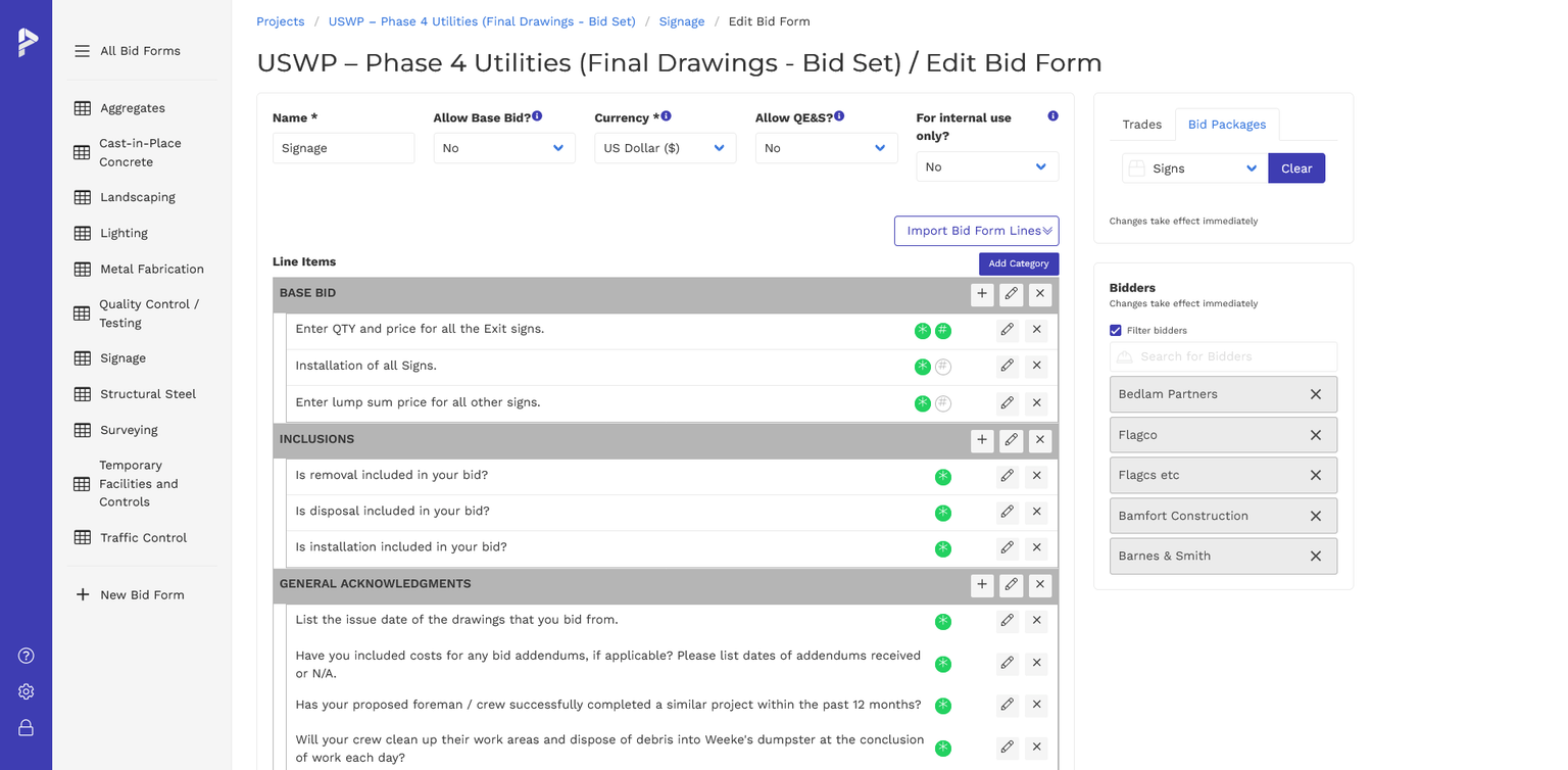 Bid Tabulation Bid Leveling PreconSuite