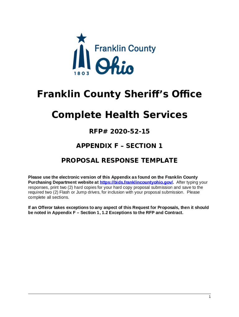 Franklin County e Filing ITB Section 1 Bid Response Template Doc