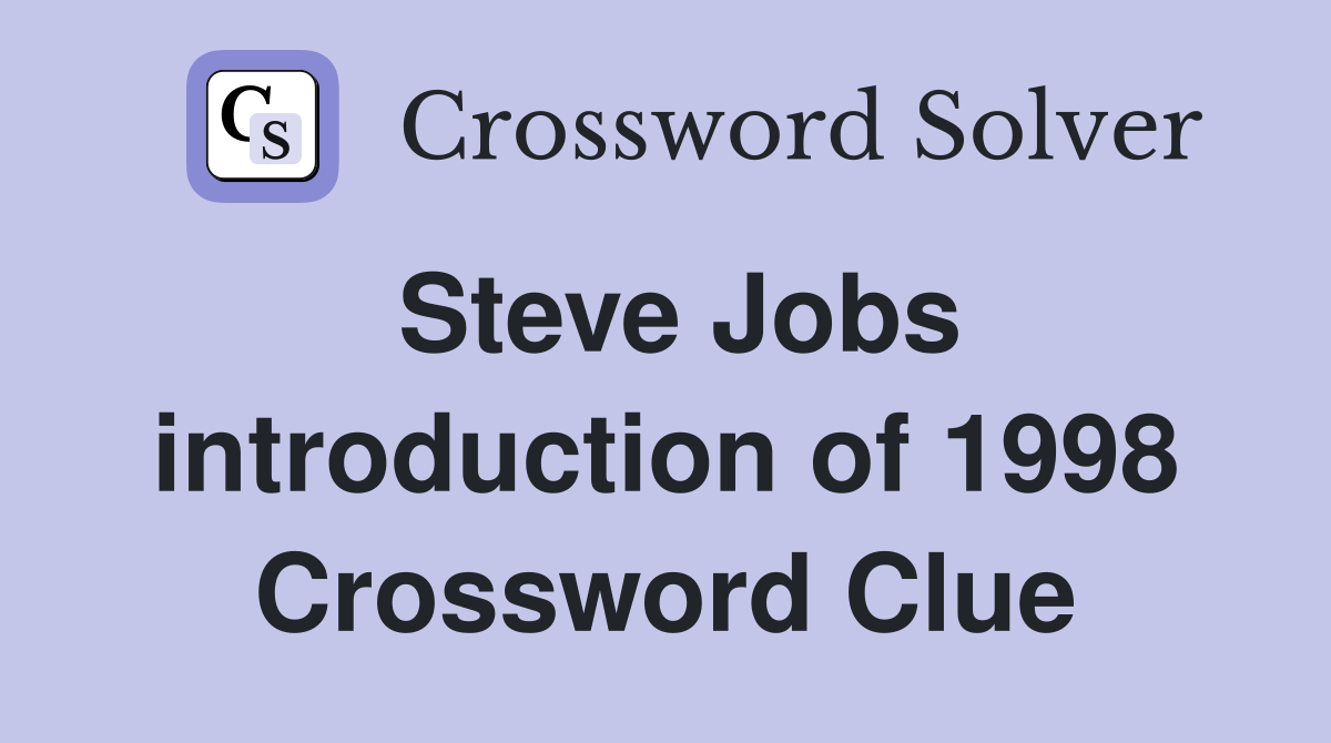 Steve Jobs introduction of 1998 Crossword Clue Answers Crossword Solver
