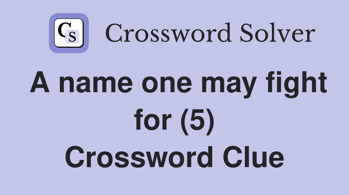 A name one may fight for (5) Crossword Clue Answers Crossword Solver