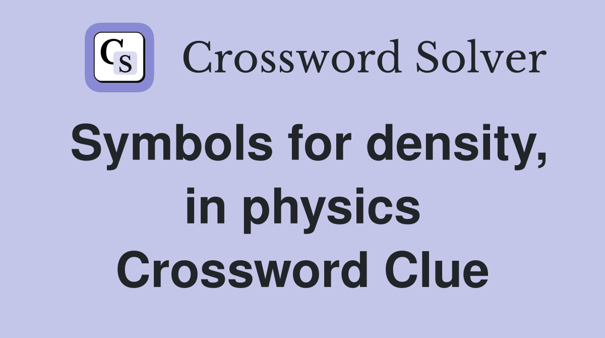 Symbols for density in physics Crossword Clue Answers Crossword Solver