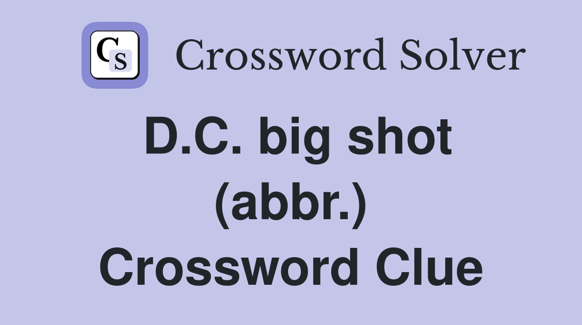 D C big shot (abbr ) Crossword Clue Answers Crossword Solver