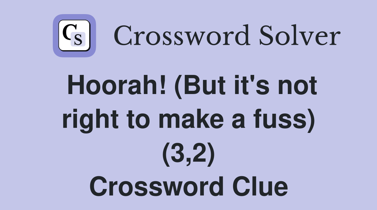 Hoorah (But it s not right to make a fuss) (3 2) Crossword Clue