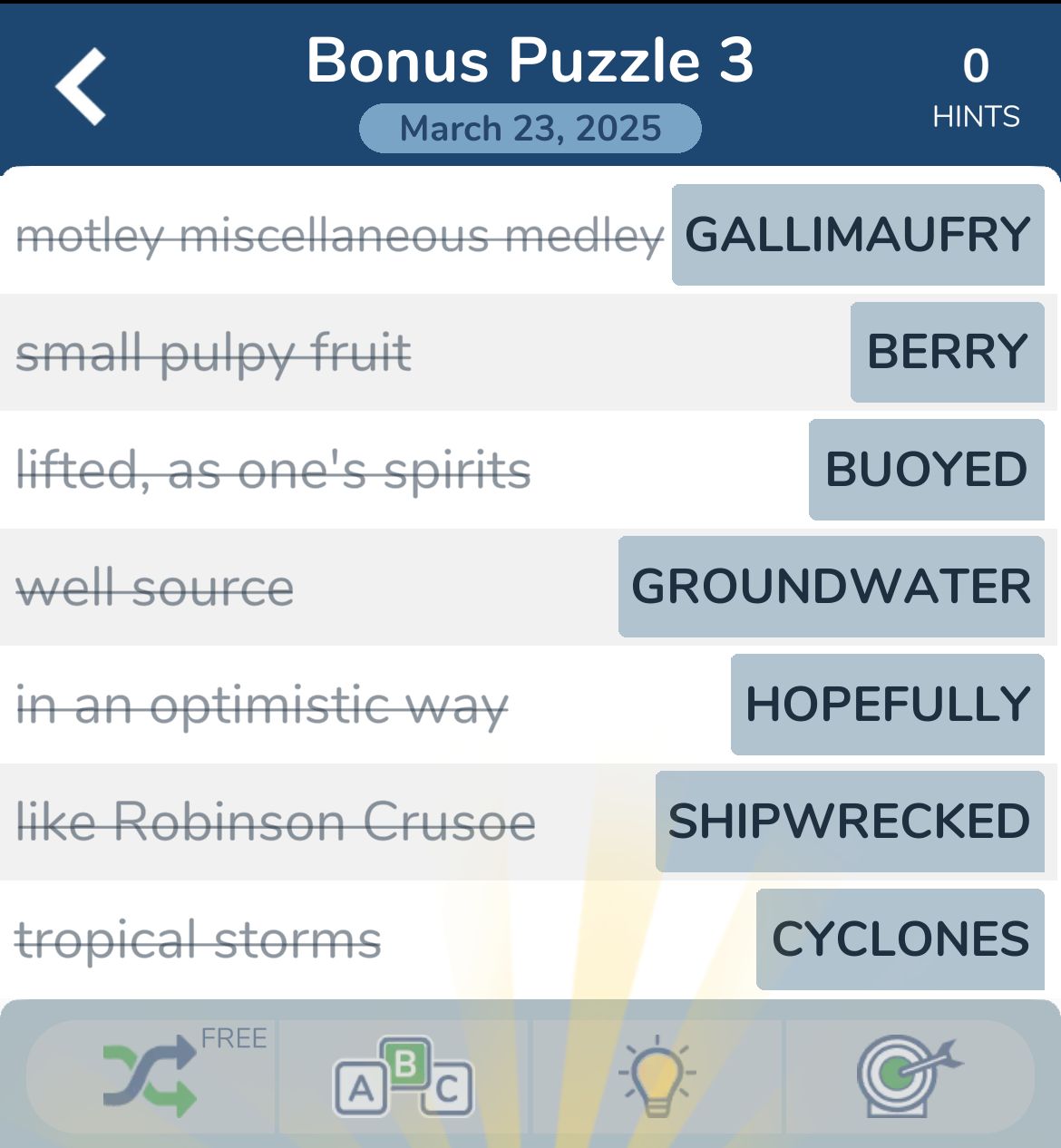 7 Little Words March 23 2025 Bonus 3 qunb
