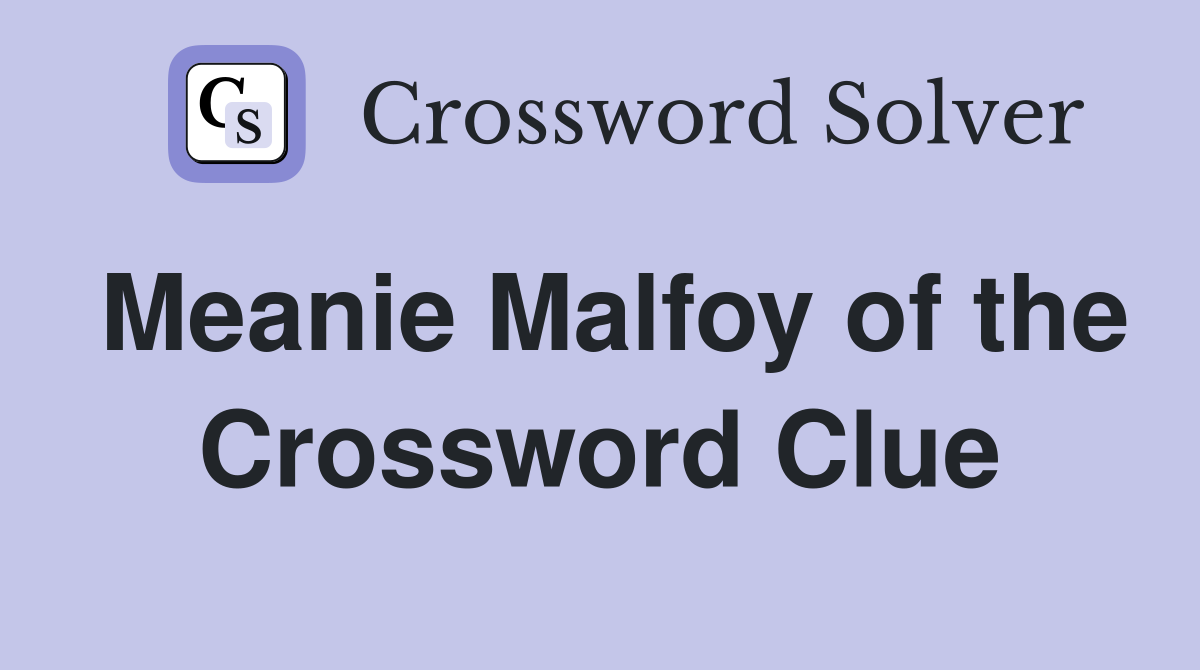 Meanie Malfoy of the Harry Potter franchise Crossword Clue Answers