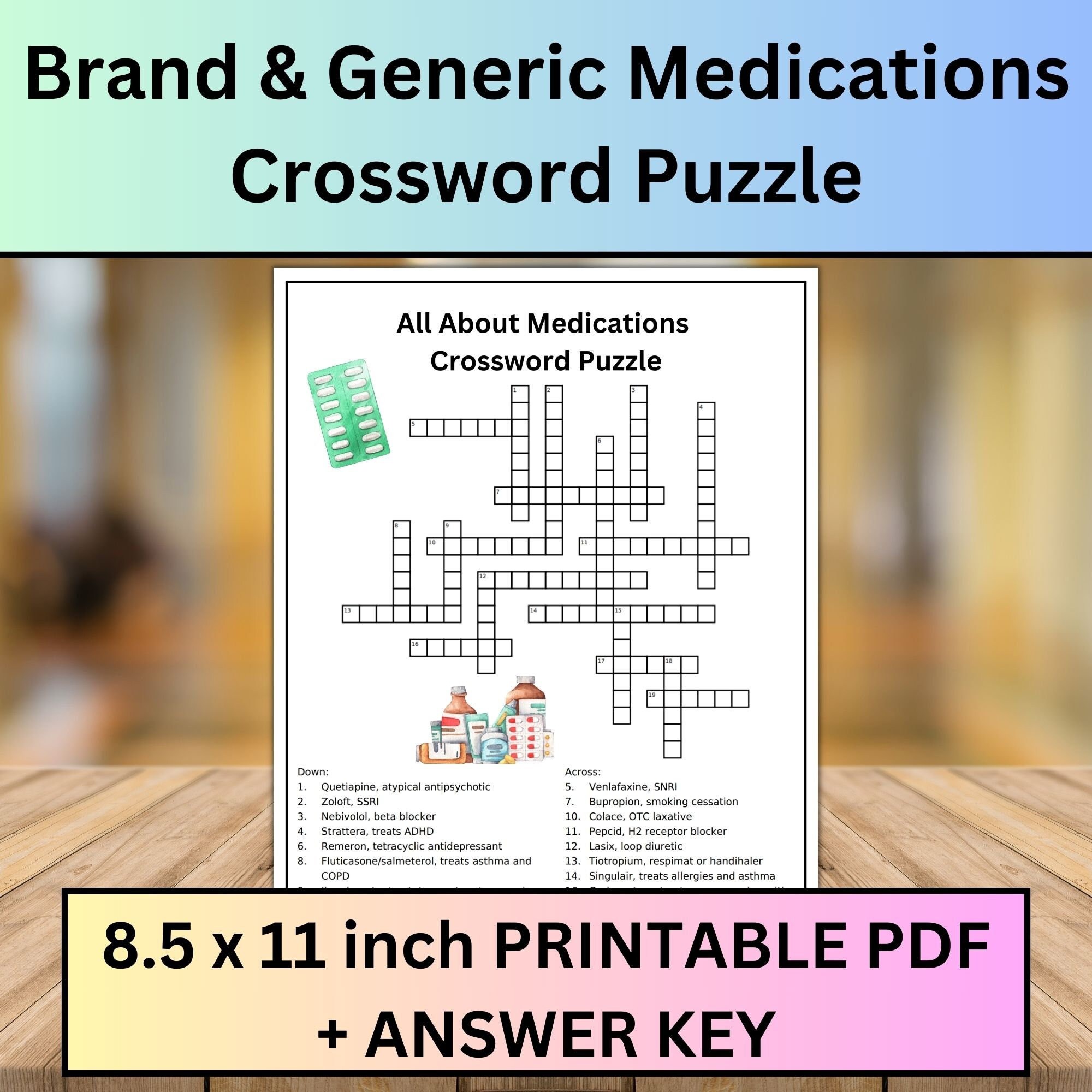Medications Crossword Puzzle: Brand Generic Meds (digital Download
