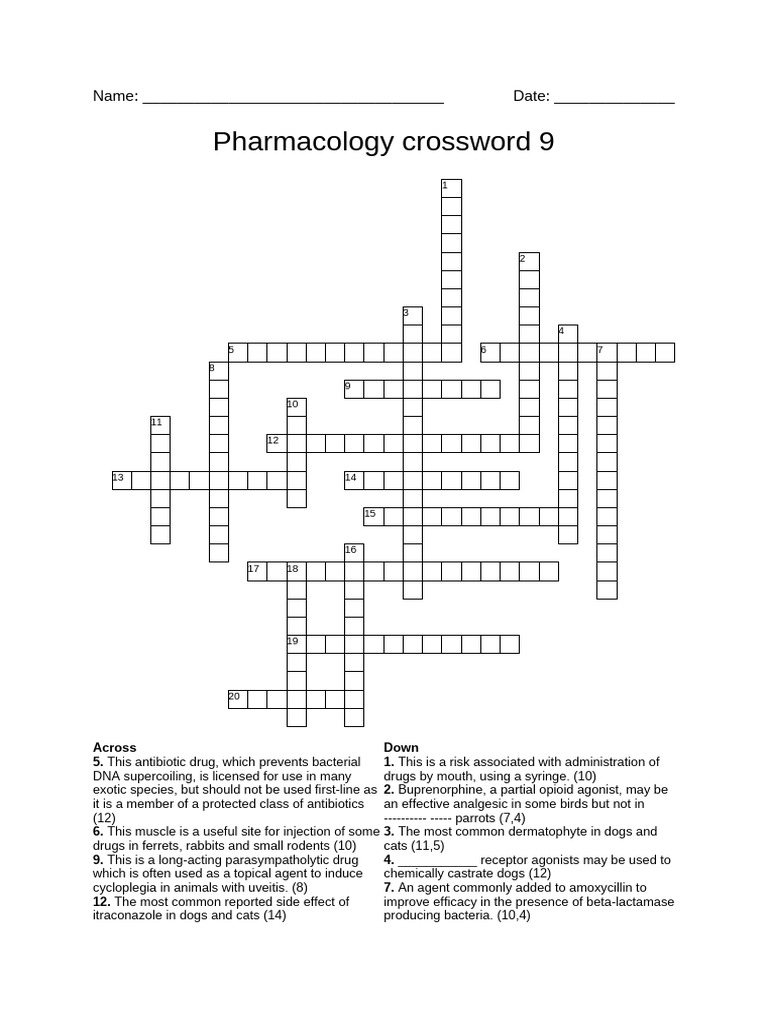 Pharmacology Crossword 8 PDF Topical Medication Pharmacology