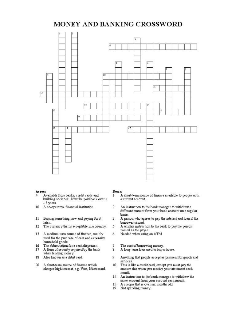 Latest Crossword Puzzles Pictures Banking Crossword Puzzles with Answers