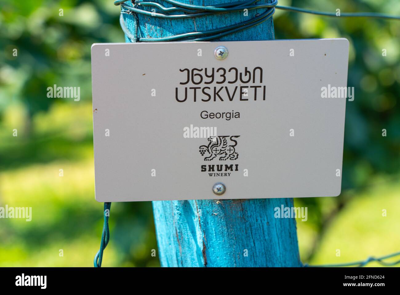 Nameplate on the pillar name of the grape variety Stock Photo Alamy