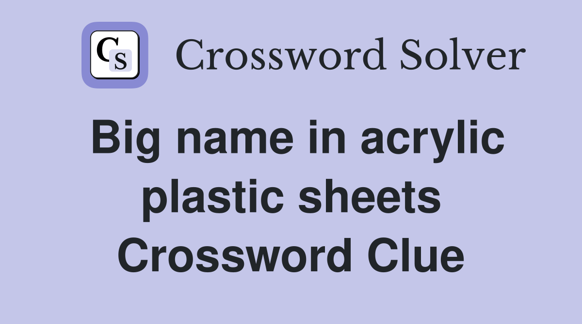 Big name in acrylic plastic sheets Crossword Clue Answers Crossword