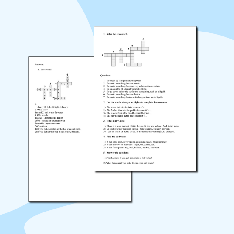 Рабочий лист Water crossword and tasks