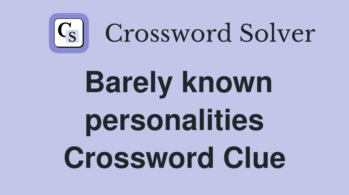 Barely known personalities Crossword Clue Answers Crossword Solver