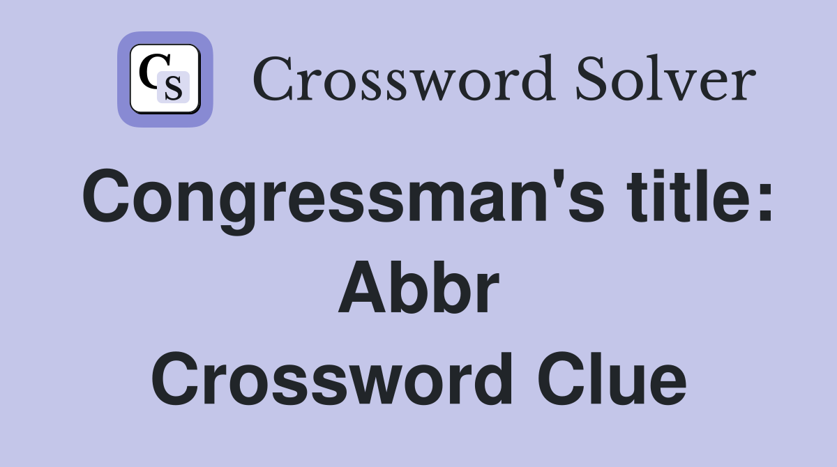 Congressman #39 s title: Abbr Crossword Clue Answers Crossword Solver