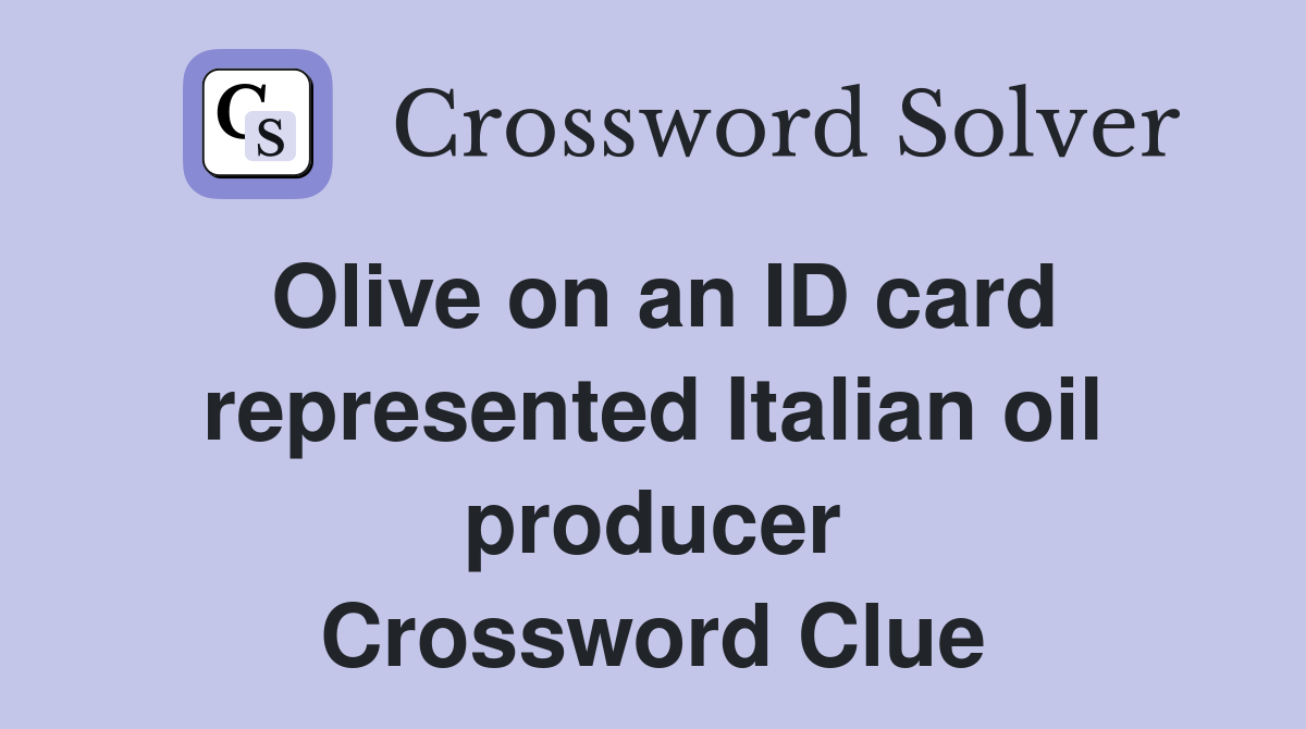 Olive on an ID card represented Italian oil producer Crossword Clue