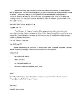 Migdalia Vega 24 Van Nostrand Ave Dover N J Resume PDF