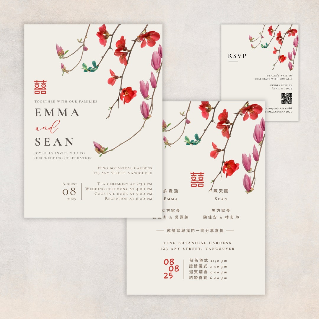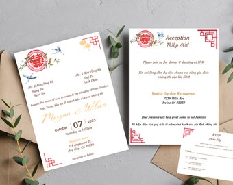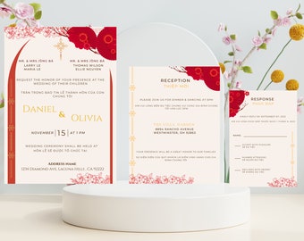 Printable Bilingual Vietnamese Wedding Invitation Set Wedding