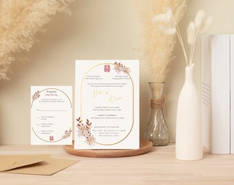 Bilingual Wedding Invitation Minimal Editable PDF Invites Instant
