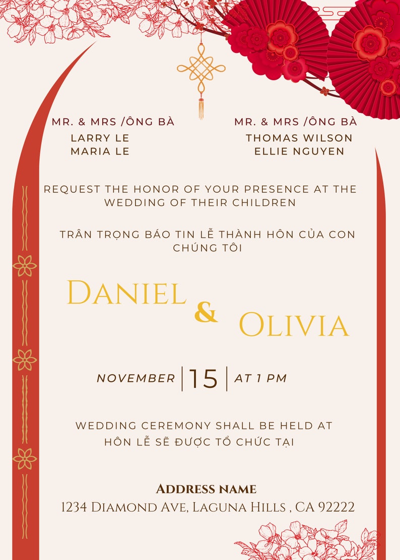 English and Vietnamese Bilingual Wedding Invitation Card Template DIY