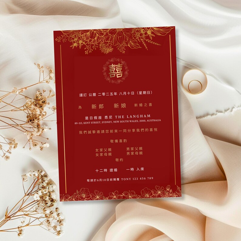 Bilingual Oriental Wedding Templates Editable Chinese Wedding