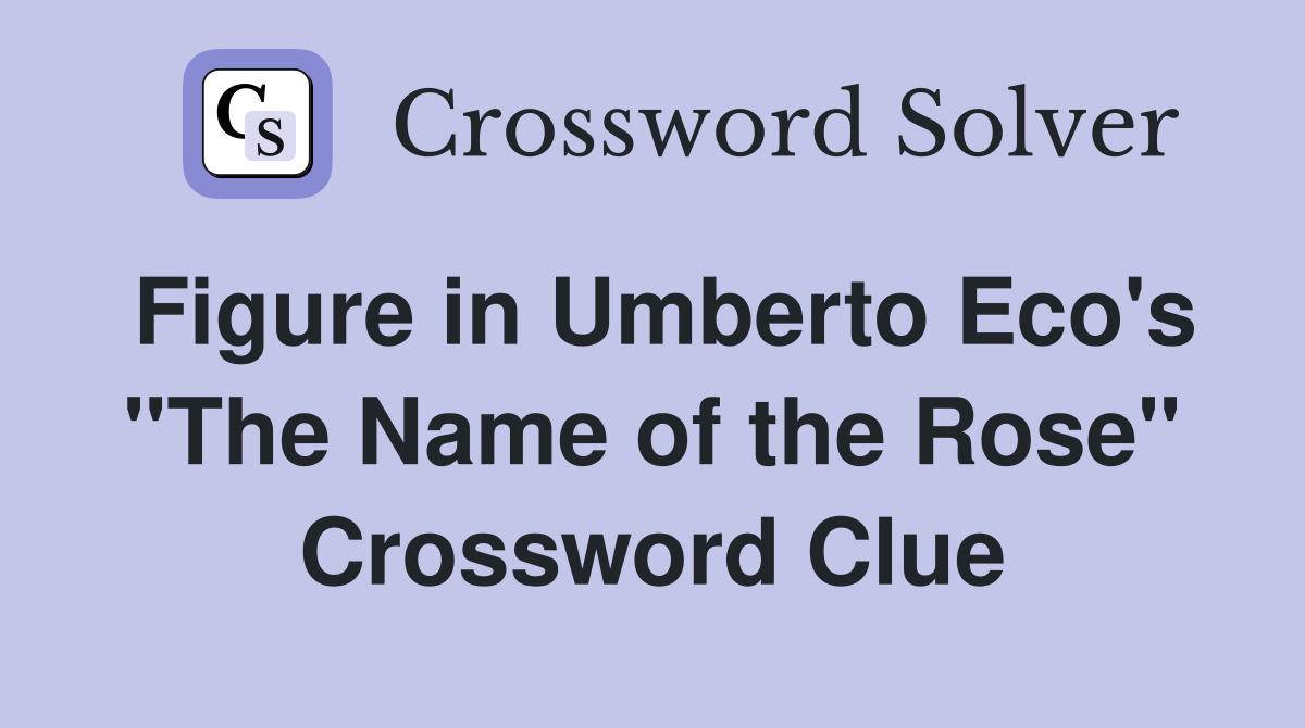 Figure in Umberto Eco #39 s quot The Name of the Rose quot Crossword Clue Answers