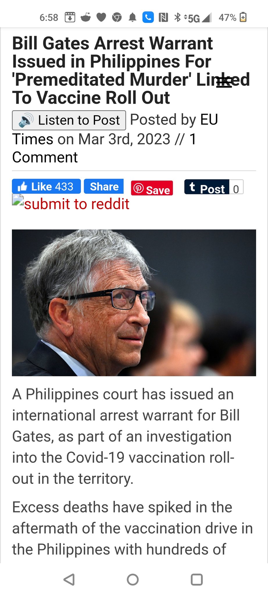 Aaaaand there it is Article in the comments Bill Gates Arrest Warrant