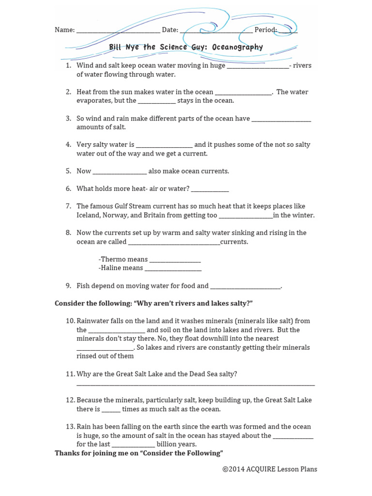 Bill Nye Oceanography Worksheet Printable Calendars AT A GLANCE