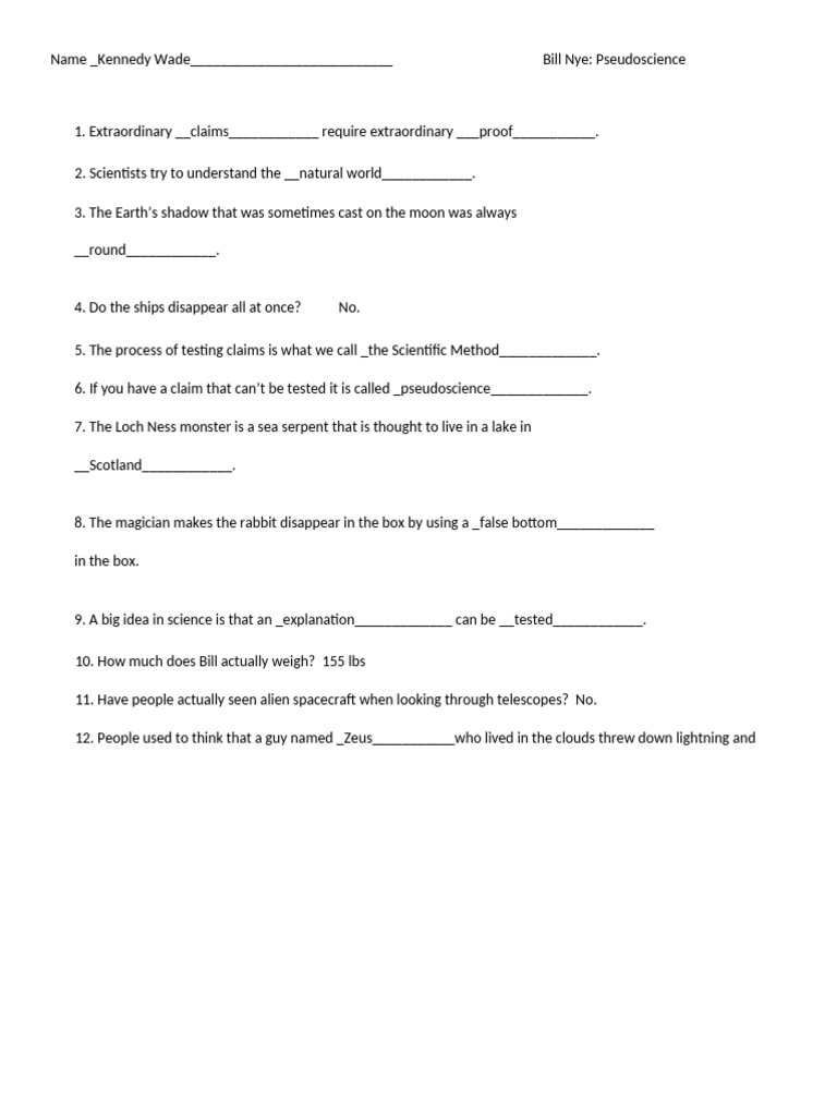 Bill Nye Pseudoscience Worksheet Fill Online Printable Fillable