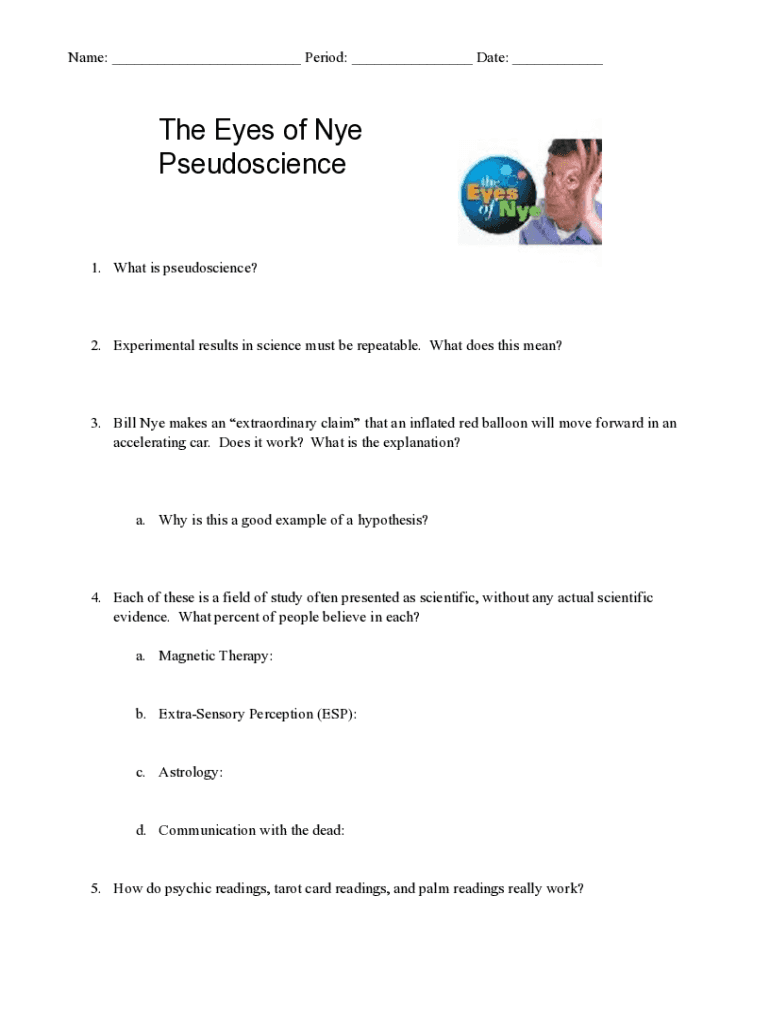 Fillable Online Eyes of Nye Pseudoscience Worksheet docx Name:Period