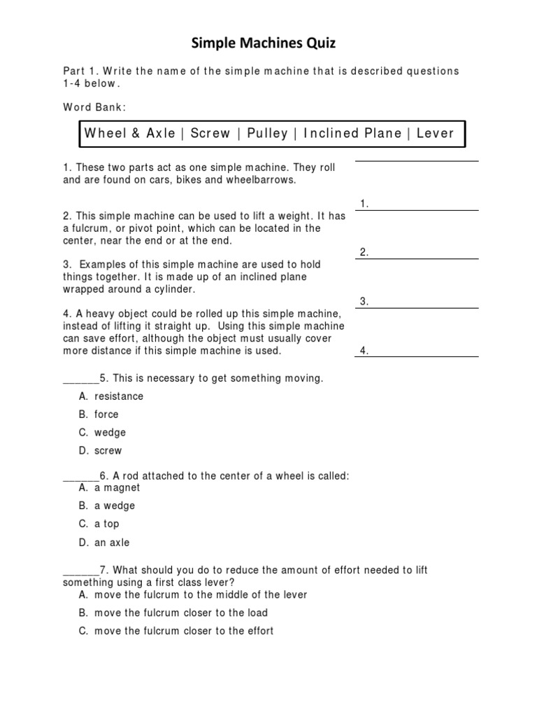 Free simple machines worksheet pdf Download Free simple machines